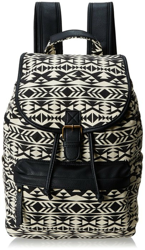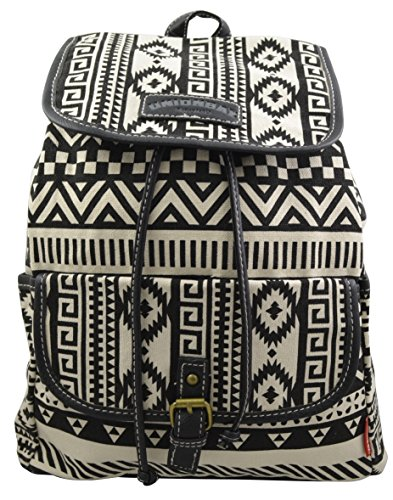 Amazon.com price at 2:09 pm UTC -Details Beautiful printed canvas backpack. The best fashion backpack for day or night, school or travel. Perfect for any age! Roomy cinch-top interior with zippered pocket, offer plenty of space for your stuff. Product Features -Canvas and Woven Material with stamped Tribal Aztec Black and white print.